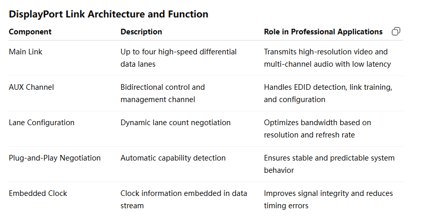 This architecture allows DisplayPort devices to automatically negotiate resolution, refresh rate, color depth, and lane count. For professional systems, this means stable plug-and-play operation and predictable performance—key advantages when deploying custom DisplayPort cables in complex environments.