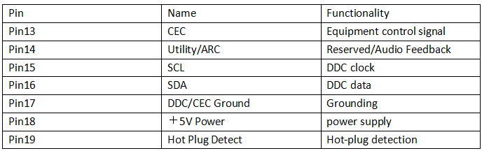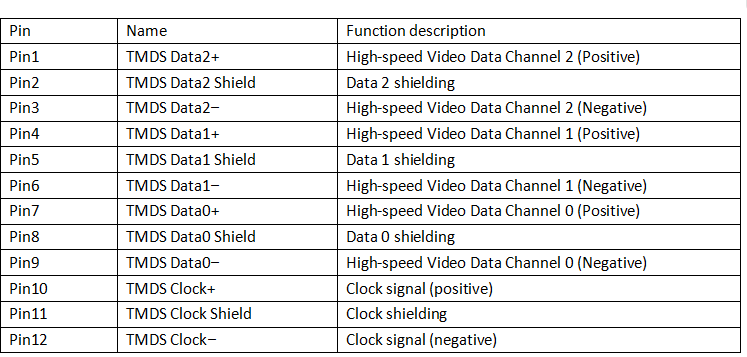 二、HDMI Type A (19-pin) – Complete pin definition (Pin 1–Pin 19)