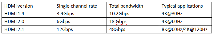 四、From HDMI 1.4 to HDMI 2.1: How is the bandwidth calculated?